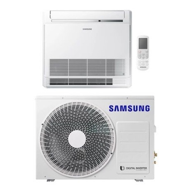 Climatiseur Mono-split Console de la marque Samsung en coloris Blanc. D'une puissance calorifique de 5,6 kWatts et d'une puissance frigorifique de 5 kWatts, cet ensemble monophasé fonctionne au gaz R32. Il est composé de l'unité extérieure AC052RXADKG/EU, de l'unité intérieure AC052RNJDKG/EU et de la télécommande de série AR-EH03E. L'unité peut être controlée à distance sur smartphone et tablette grâce à l'interface Wi-Fi disponible en option et à l'application "SmartThings" téléchargeable sur Android et iOS (compatible avec Amazon Alexa, Google Assistant et Bixby). Les liaisons frigorifiques 1/4-1/2 nécessaires à l'installation sont également disponibles en option. Référence de l'ensemble : AC052RXADKG/EU/AC052RNJDKG/EU. La console possède deux sorties d'air disctinctes (chauffage et rafraîchissement) pour éviter les stratifications. Il est possible de l'installer au sol, au mur ou semi-encastrée. Le panneau avant a été conçu afin d'empêcher la poussière de s'y accumuler.